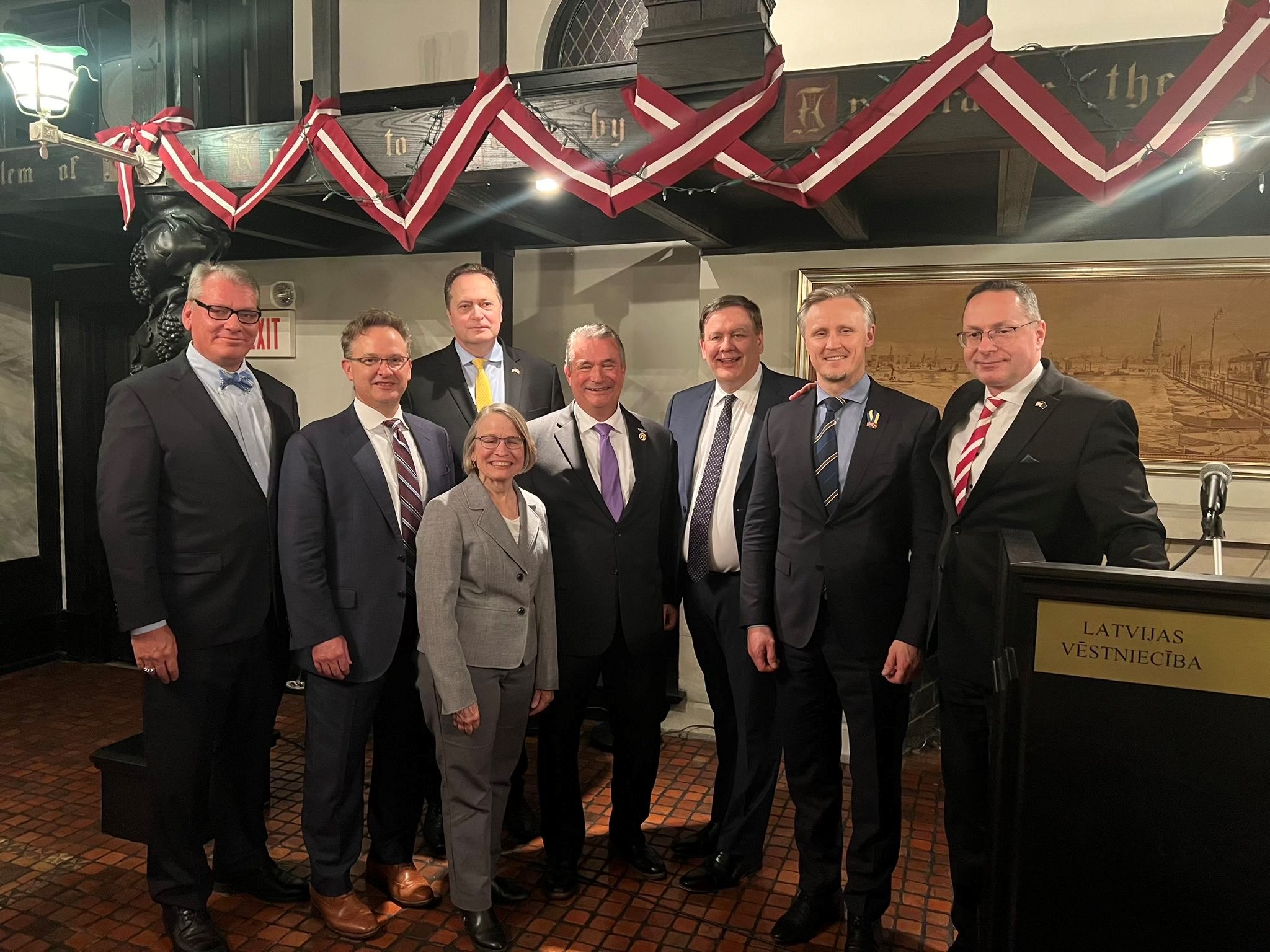 Consular Kalnins attending a Latvian dinner with Mikus Kins, Lauris Lambergs and others at the Latvian Community Center in Los Angeles in 2022.